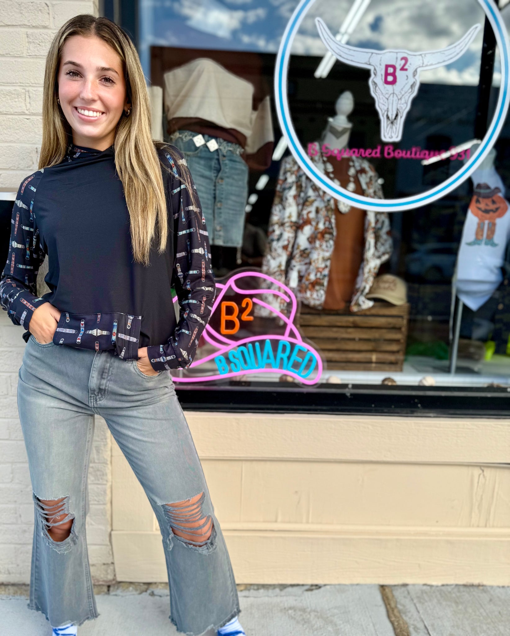 Ash Black, Washed, Distressed Knee & Hem Crop Kick Flare Denim!