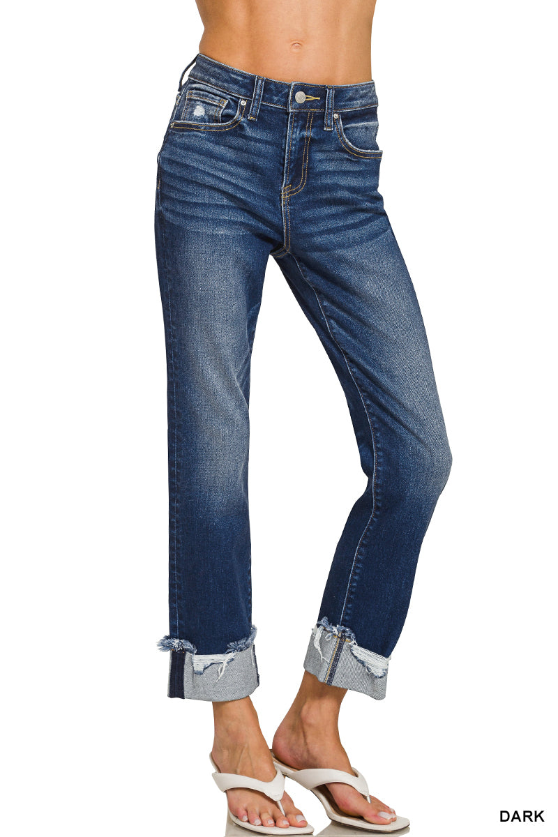 Cuffed, Distressed Hem Denim! Lots of Stretch!