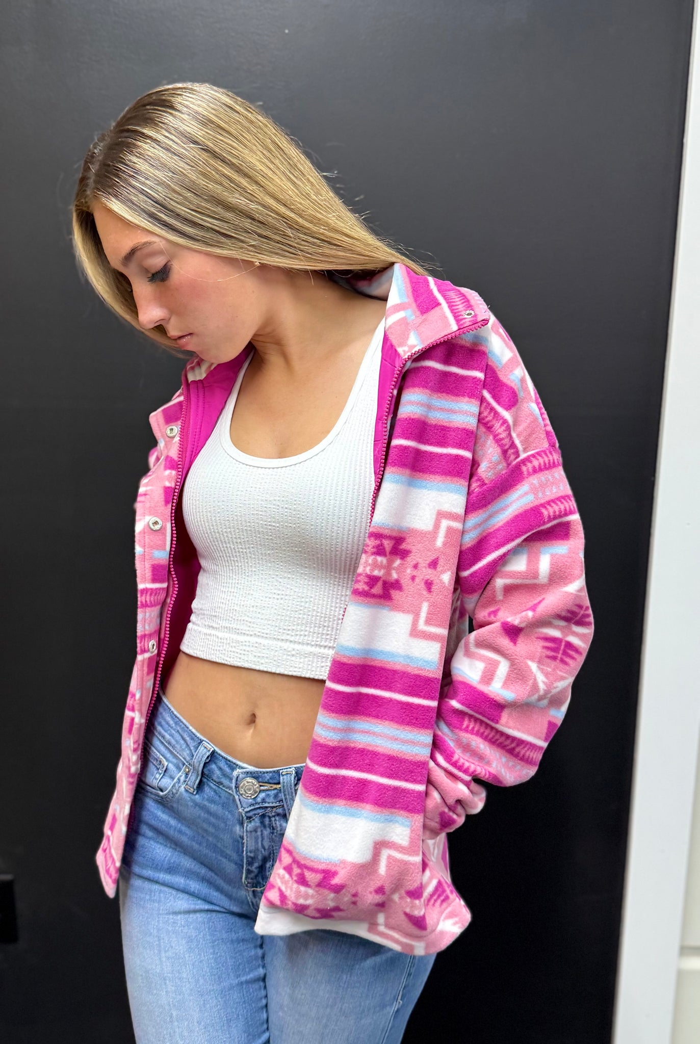 The Pearsall Pink Aztec Jacket Aztec Soft Cozy Zip Up Lined Snap Up Jacket