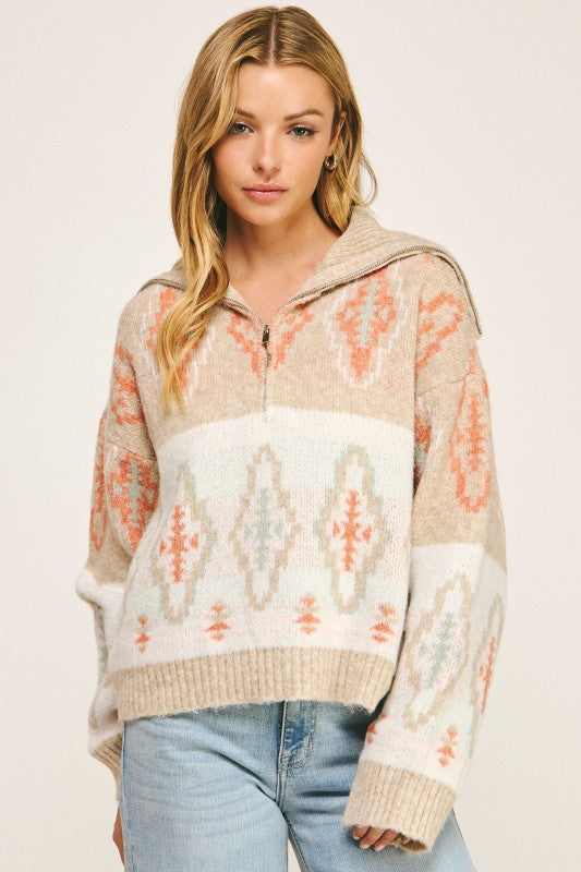 Aztec 1/4 Zip, Collar, Duster Sweater