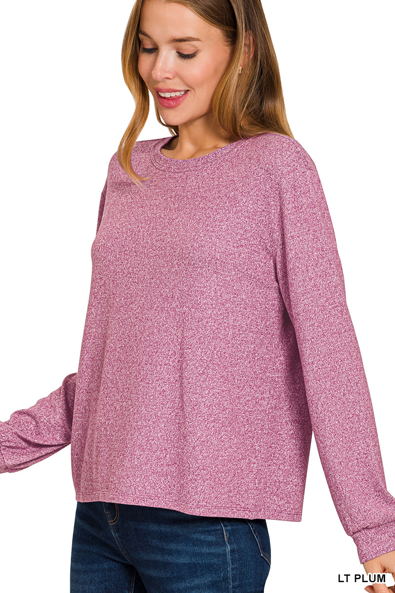 Soft Melange, Hacci, Round Neck, Long Sleeve Tee! Relaxed Fit!